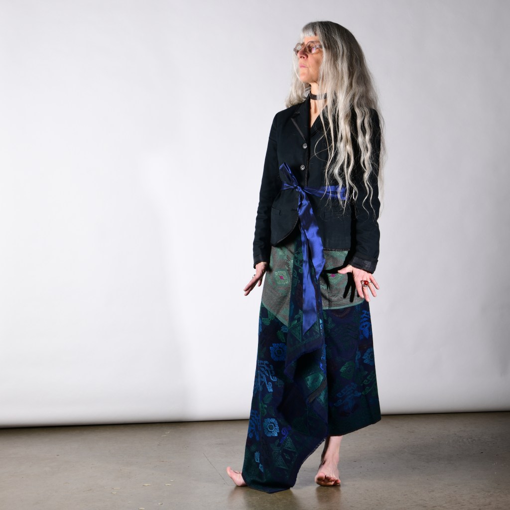 Before I left for the photoshoot I sewed the two pieces of a Songket Alam sarong together. Balinese Songket are hand-woven in two lengths the width of the loom and less than the 2 meters you would typically get with a batik sarong; because Songket are fine, you don’t get excess length the way you do in other fabrics that are less precious. Prior to the photoshoot, I had never worn any of my Songket Alam textiles as a sarong. Songket Alam (alam means natural) are a modern style of hand-woven, supplementary-weft textile in which the motifs are created by colored cotton or silk instead of the gold or silver threads of traditional Songket, which were luxurious fabrics reserved for nobles and royalty. In supplementary-weft textiles, generally, the threads that make up the design are described as ‘floating’ on top of the base fabric; they are ornamental, integral to the visual design, but not structural. If you cut all of them off you would still have a length of cloth. I was told that what makes Songket Alam ‘natural’ is a combination of natural and commercial dyes so that once the cloth is woven and washed, the natural dyes run and combine while the commercial dye stays bright. The result is often a muted palette with splashes of color that can be extremely beautiful. For awhile, this style of weaving was the latest trend in luxury sarongs. It has been supplanted since but it’s still my favorite.